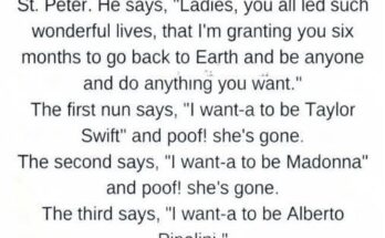 At the Pearly Gates, beneath clouds arranged with the neatness of an art museum, three Italian nuns arrived together after long, faithful lives. St. Peter welcomed them warmly, smiling as he checked their names off a very shiny list. “Sisters,” he said kindly, “you lived with compassion, humility, and good humor. As a reward, Heaven is granting you something special. You may return to Earth for six months and be anyone you wish, doing anything you choose—just for fun.” The nuns looked at one another in astonishment. A lifetime of rules, routines, and quiet discipline, and now… total freedom. Their eyes sparkled like children given permission to stay up past bedtime.