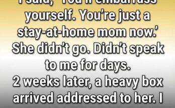 Two weeks later, a large, heavy box arrived on our porch with her name written clearly across the label. She was out running errands, so I brought it inside, curiosity getting the better of me. The box was heavier than I expected, solid and deliberate.