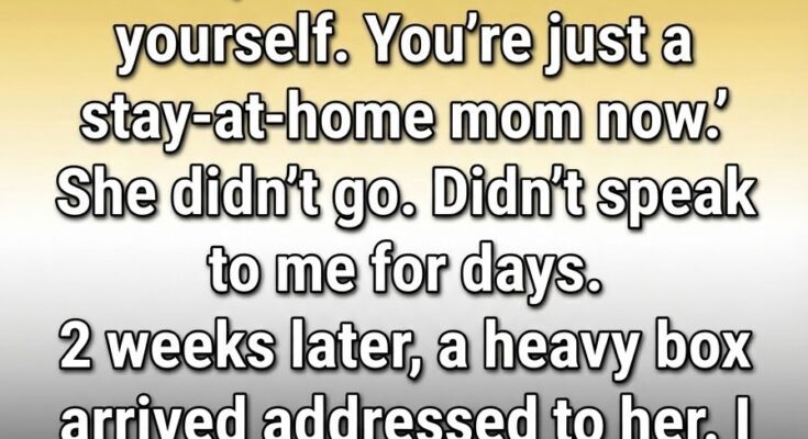 Two weeks later, a large, heavy box arrived on our porch with her name written clearly across the label. She was out running errands, so I brought it inside, curiosity getting the better of me. The box was heavier than I expected, solid and deliberate.