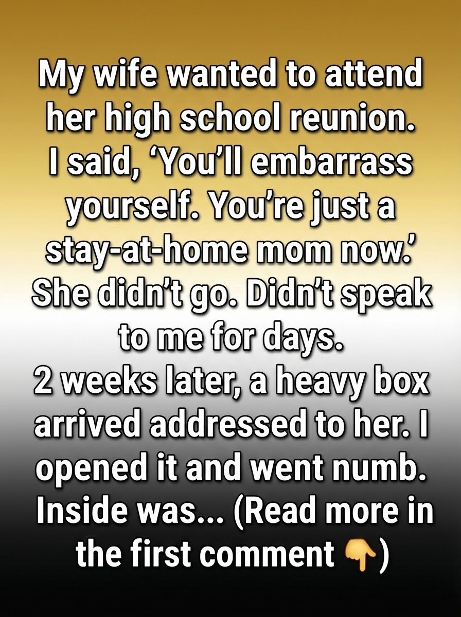 The night my wife mentioned her high school reunion, I barely looked up from my phone. She stood in the kitchen, holding the invitation with a hopeful smile I didn’t fully register until it was gone. I told her, carelessly and arrogantly, that it might be awkward for her now—that she was “just” a stay-at-home mom and might feel out of place.