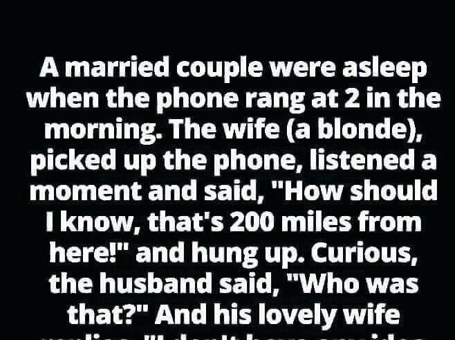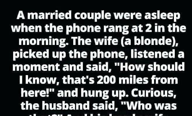 “How should I know? That’s 200 miles from here!” and hung up.