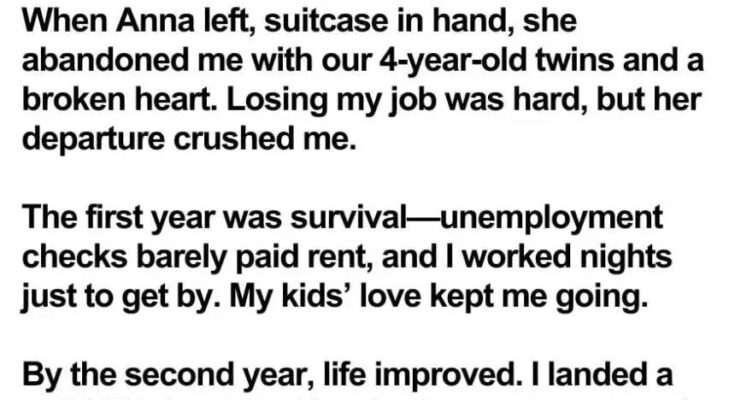 When Anna walked out of our apartment with nothing but a suitcase and a cold, “I can’t do this anymore,” I was left standing there holding our four-year-old twins, Max and Lily.
