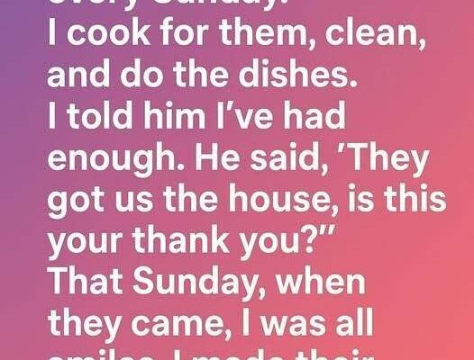 From that day on, Sundays changed. Everyone helped—some cooked, others cleaned, sometimes we ordered takeout. The laughter returned, but so did balance and respect. I wasn’t just “the hostess who did it all” anymore. I was a valued part of the family—and, finally, I felt free.
